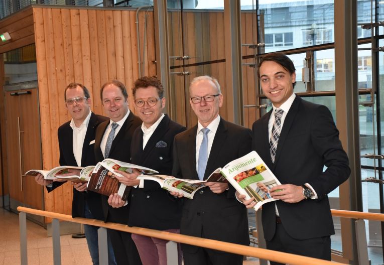 Vechta. Genau 300 Seiten, über 600 Abbildungen und 930 Gramm Gewicht: Am Montag präsentierten die Landräte Johann Wimberg und Herbert Winkel zusammen mit OV-Geschäftsführer Christoph Grote, Geschäftsführer Christian Bitter von der Werbeagentur Bitter & Co. sowie Geschäftsführer Jan Kreienborg vom Verbund Oldenburger Münsterland die elfte Ausgabe des Wirtschaftsmagazins argumente. Die Zeitschrift erscheint in einer Auflage von 13.000 Exemplaren und ist ab sofort auf Anfrage beim Verbund Oldenburger Münsterland kostenfrei erhältlich.